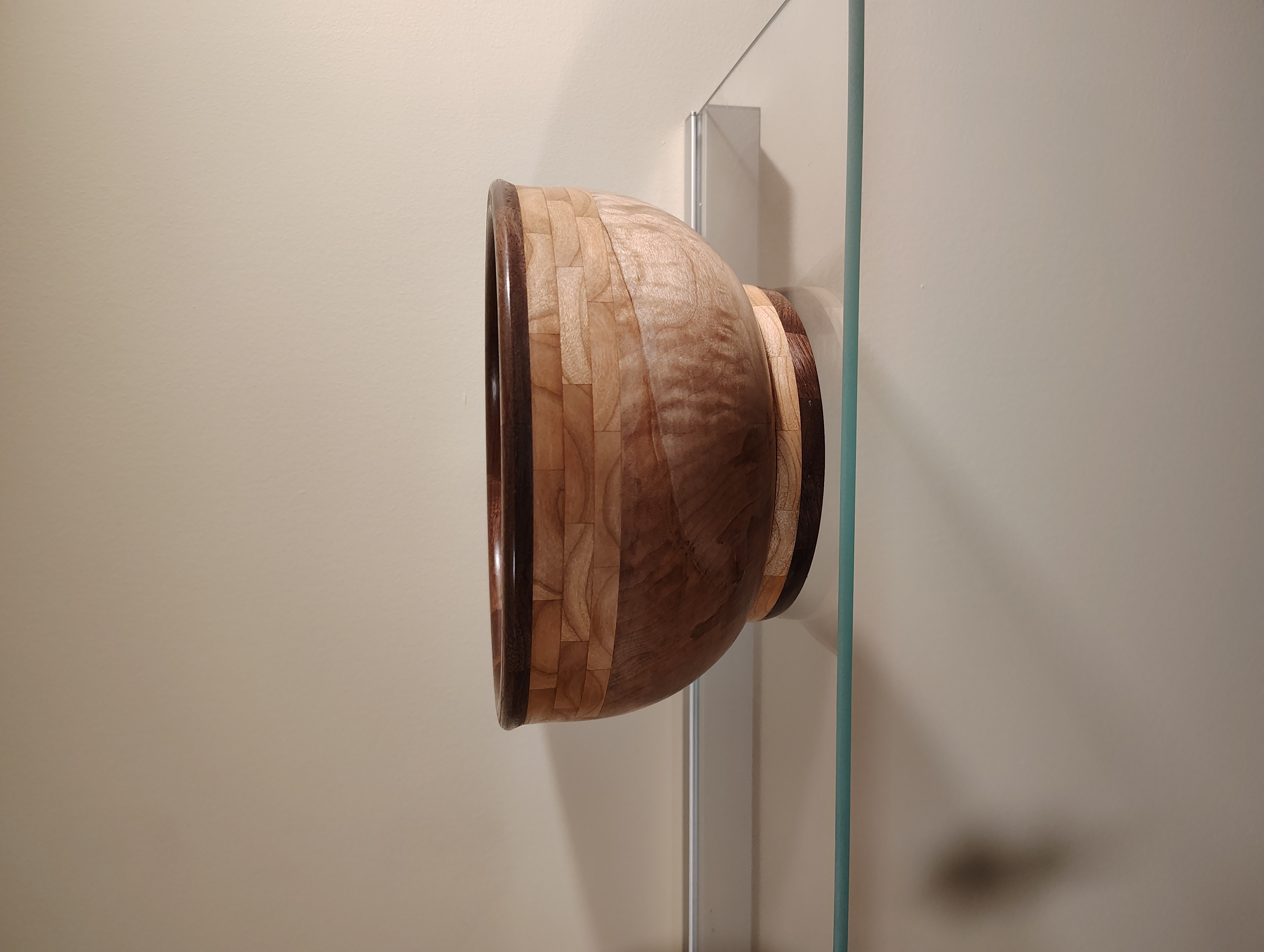 | Sorry This is Sold - I can make similar | $220 CAD + Shipping, Walnut & Maple Salad Bowl. 9" x 4.75 T x 4.5" Deep, 241 pieces | Email: howie.eb77@gmail.com |