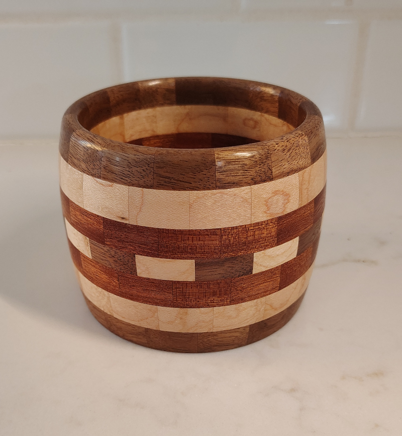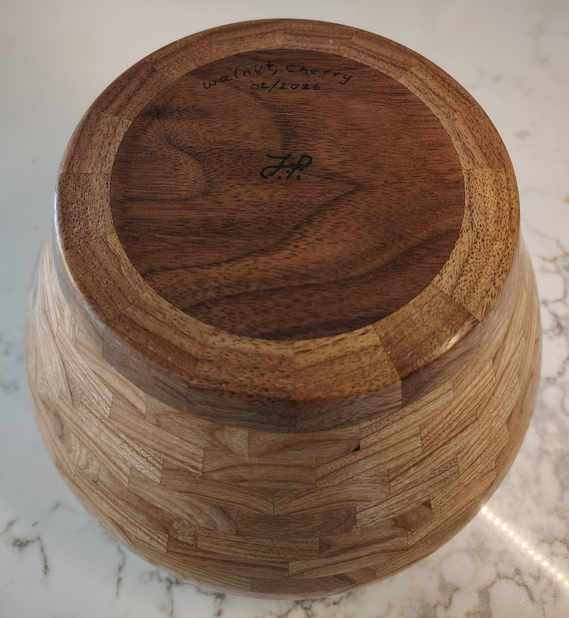 | Cherry and Walnut Bowl.$125 CAD 6" x 3.75 T x 3" Deep, 161 pieces | Email: howie.eb77@gmail.com | |